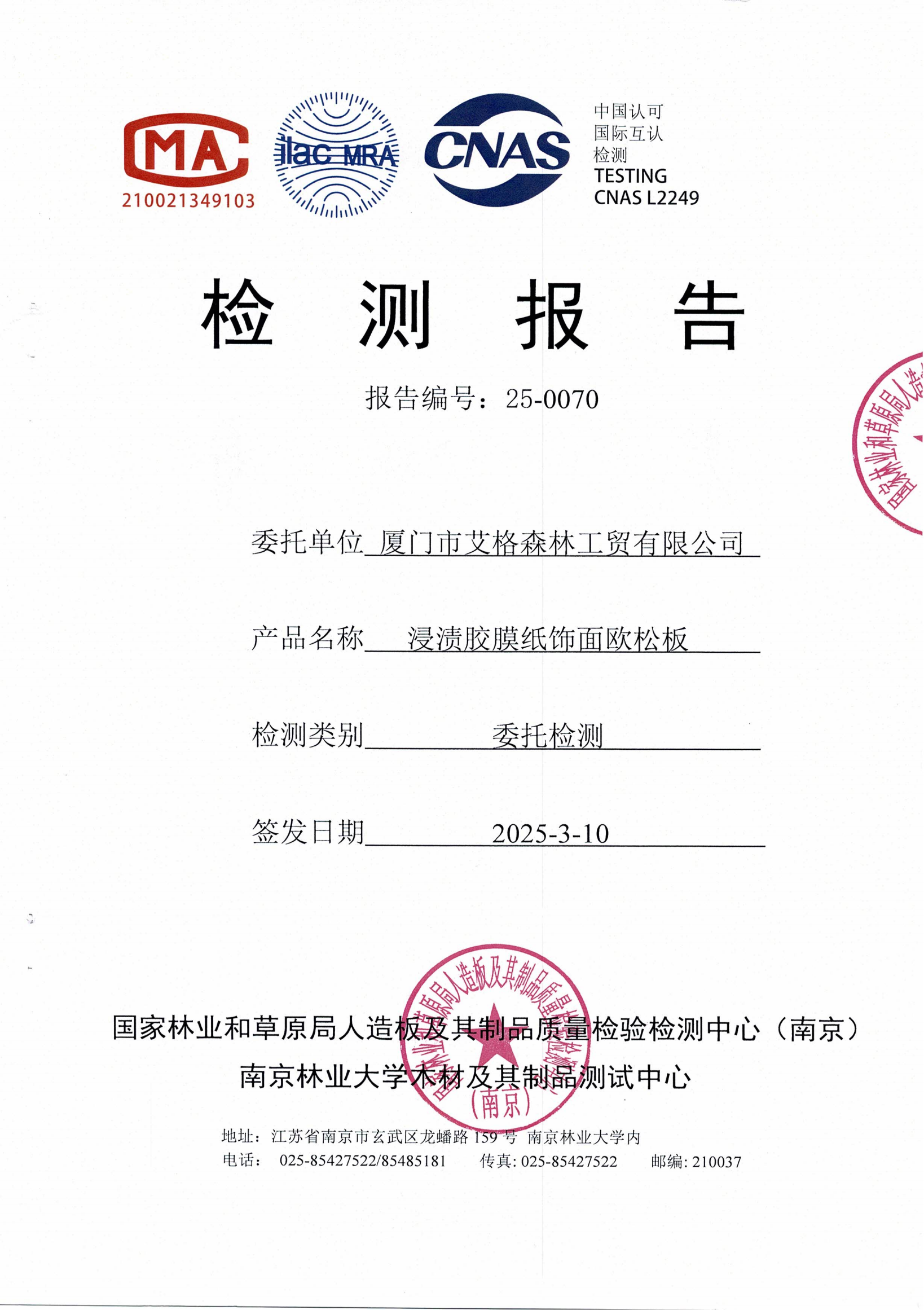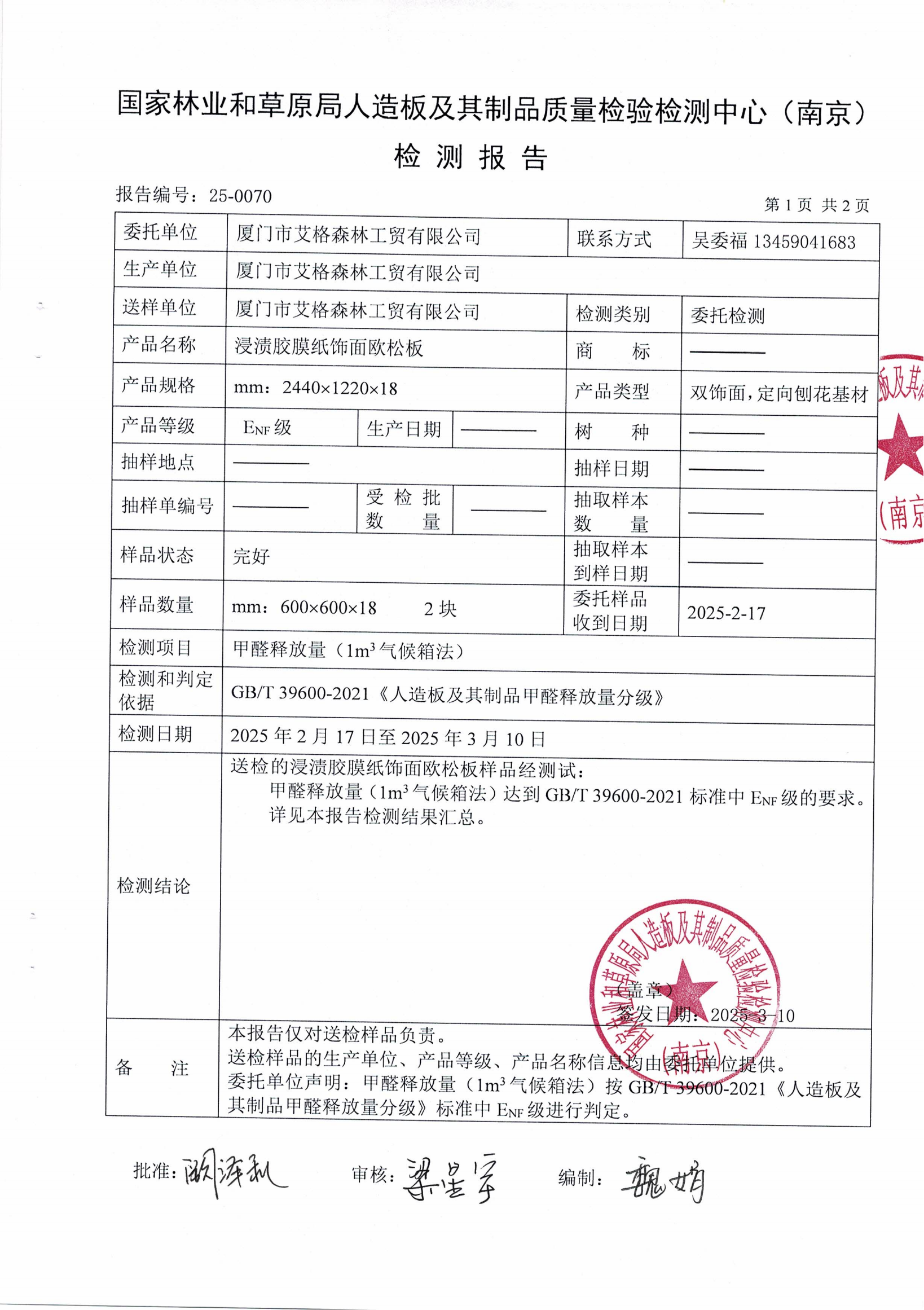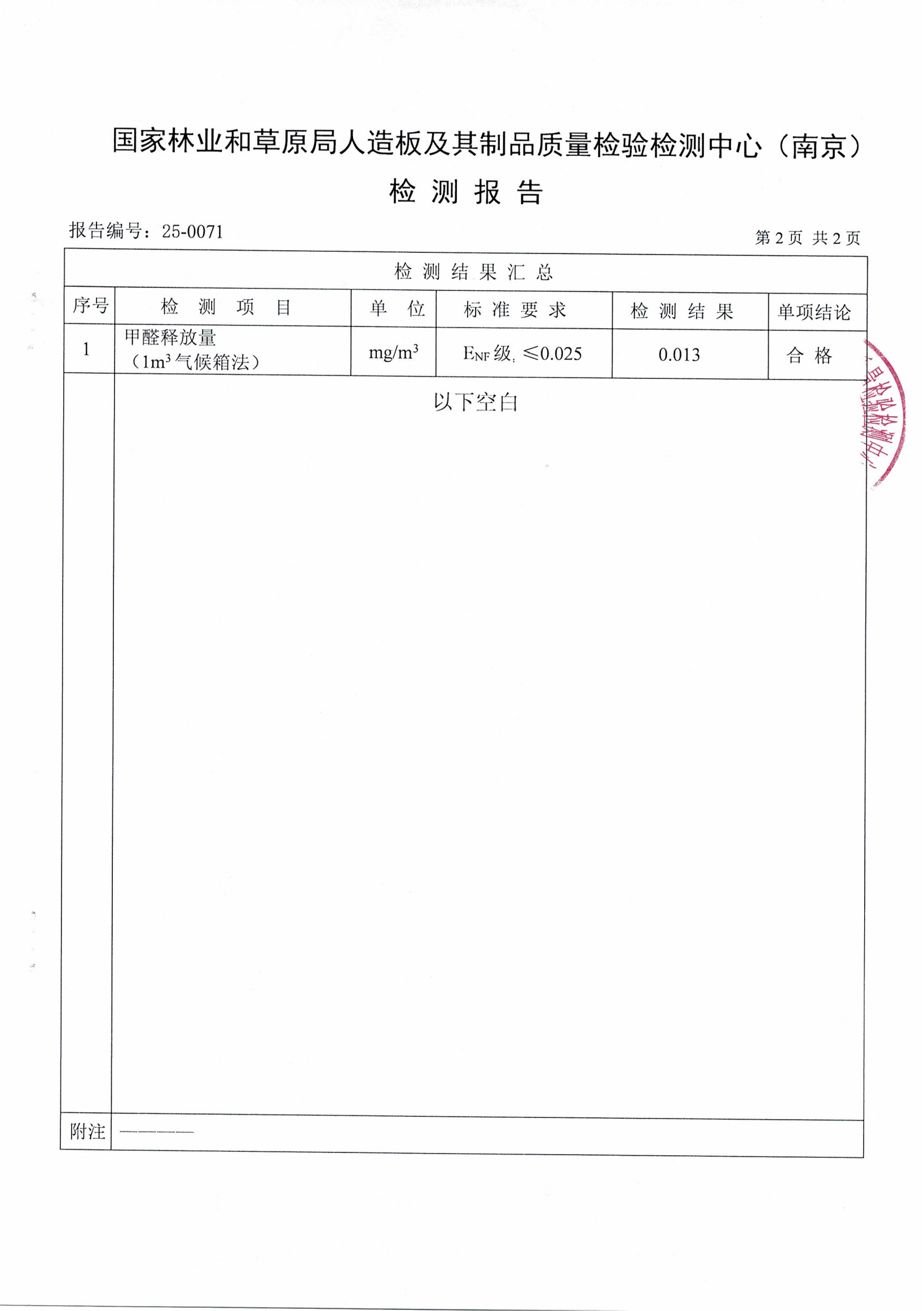 實(shí)木多層板ENF級(jí)檢測報(bào)告
