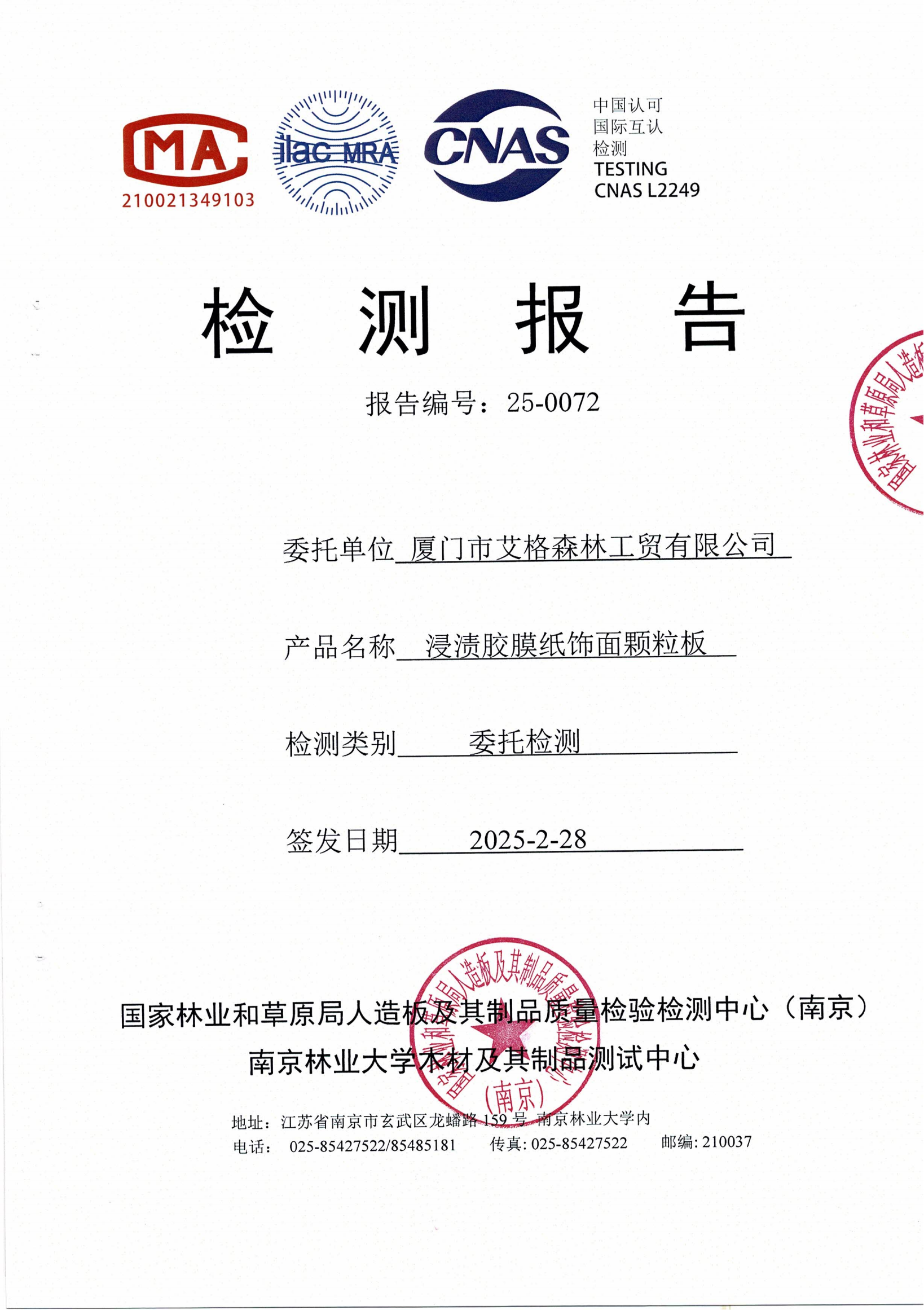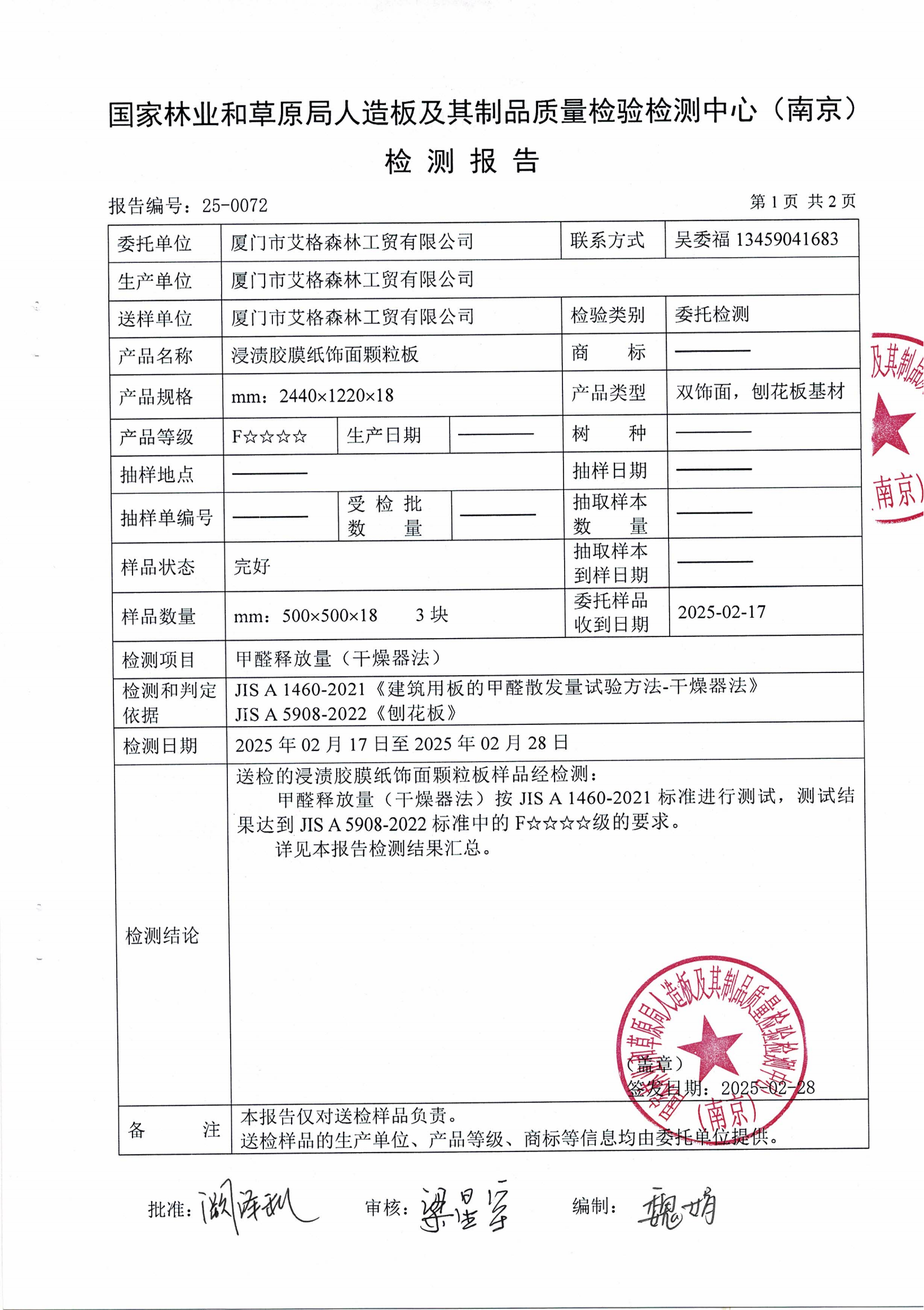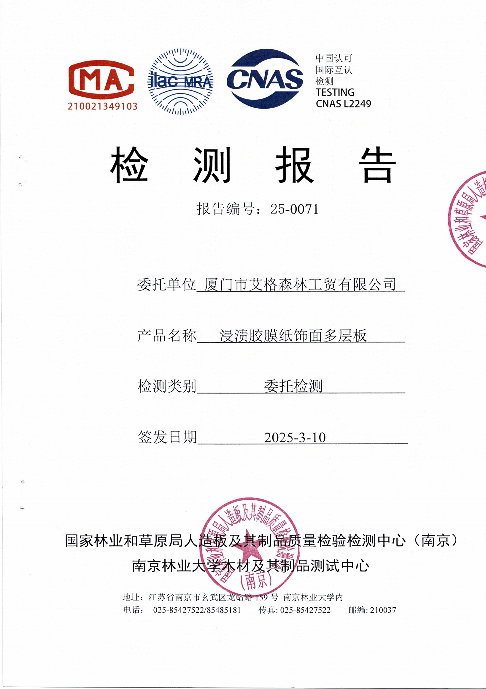 實(shí)木多層板ENF級(jí)檢測報(bào)告